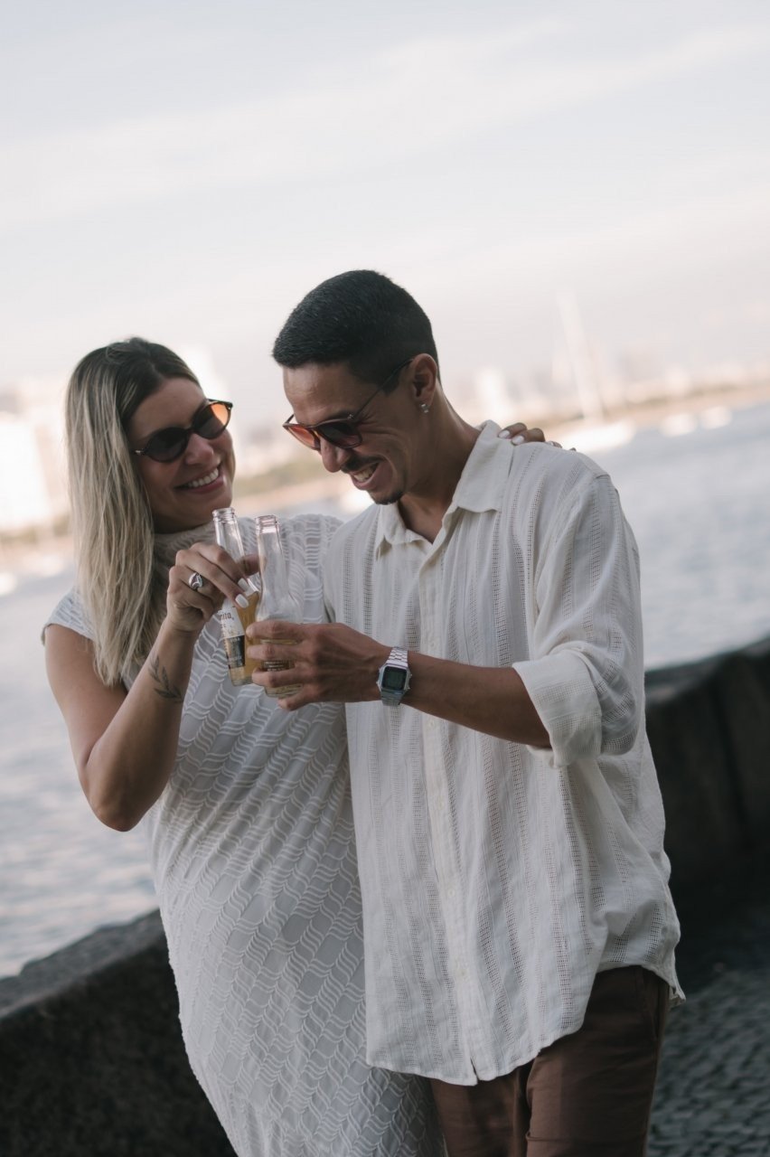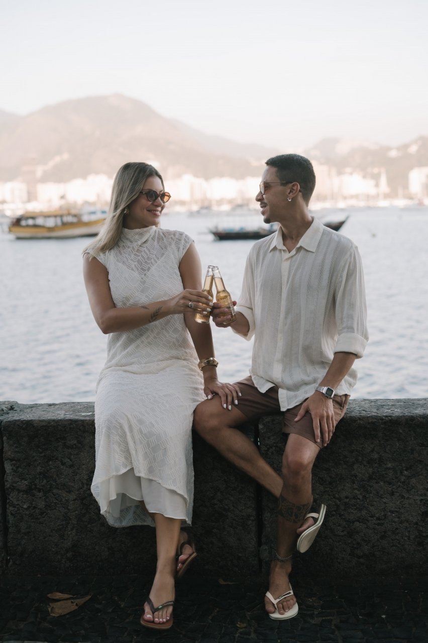 Nosso amor é assim: leve, verdadeiro e feito de momentos simples que viram memória. E é exatamente desse jeito que queremos celebrar esse dia: felizes, com churrasco, samba, cerveja gelada, pessoas que nos amam por perto e, se tudo der certo, um pôr do sol para abençoar.