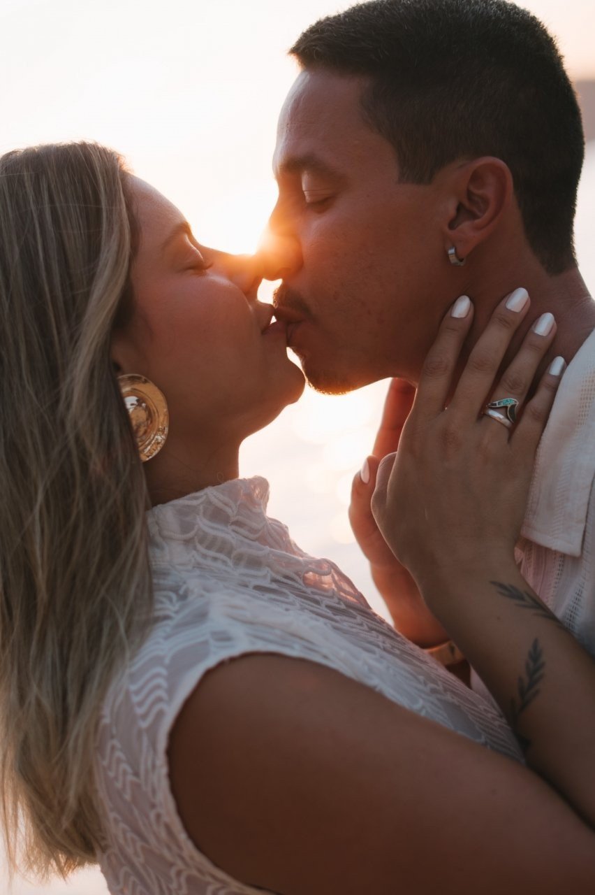 Pela primeira vez a gente se olhou de forma diferente e depois do primeiro beijo, não desgrudamos mais.